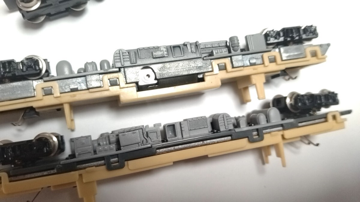 床下機器には、成型色のもの、灰色に塗装したものがあります。