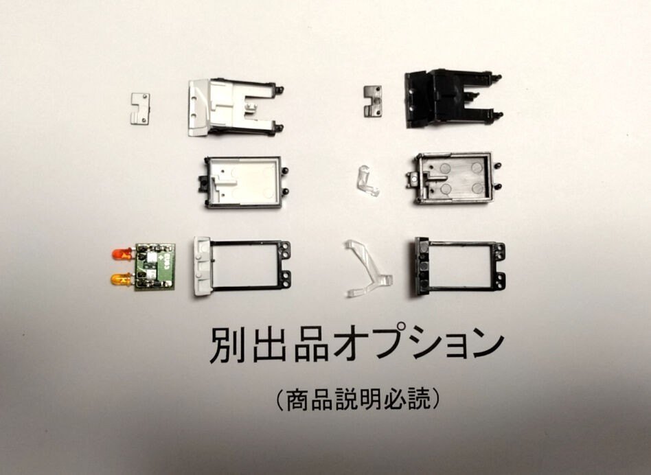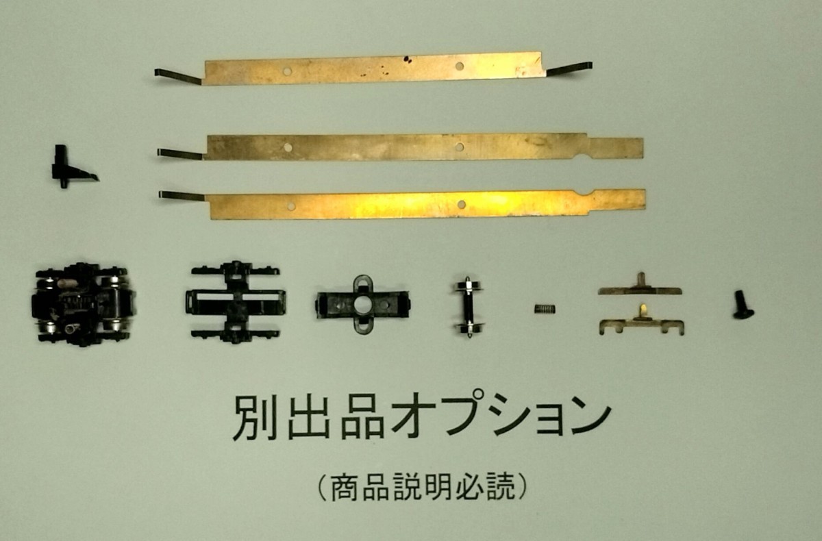 床板部分以外の、台車枠、車輪、通電板、ライトスイッチ、床下機器、ライトケース、ライトレンズ、ライト基盤等は別出品の有料オプションです。