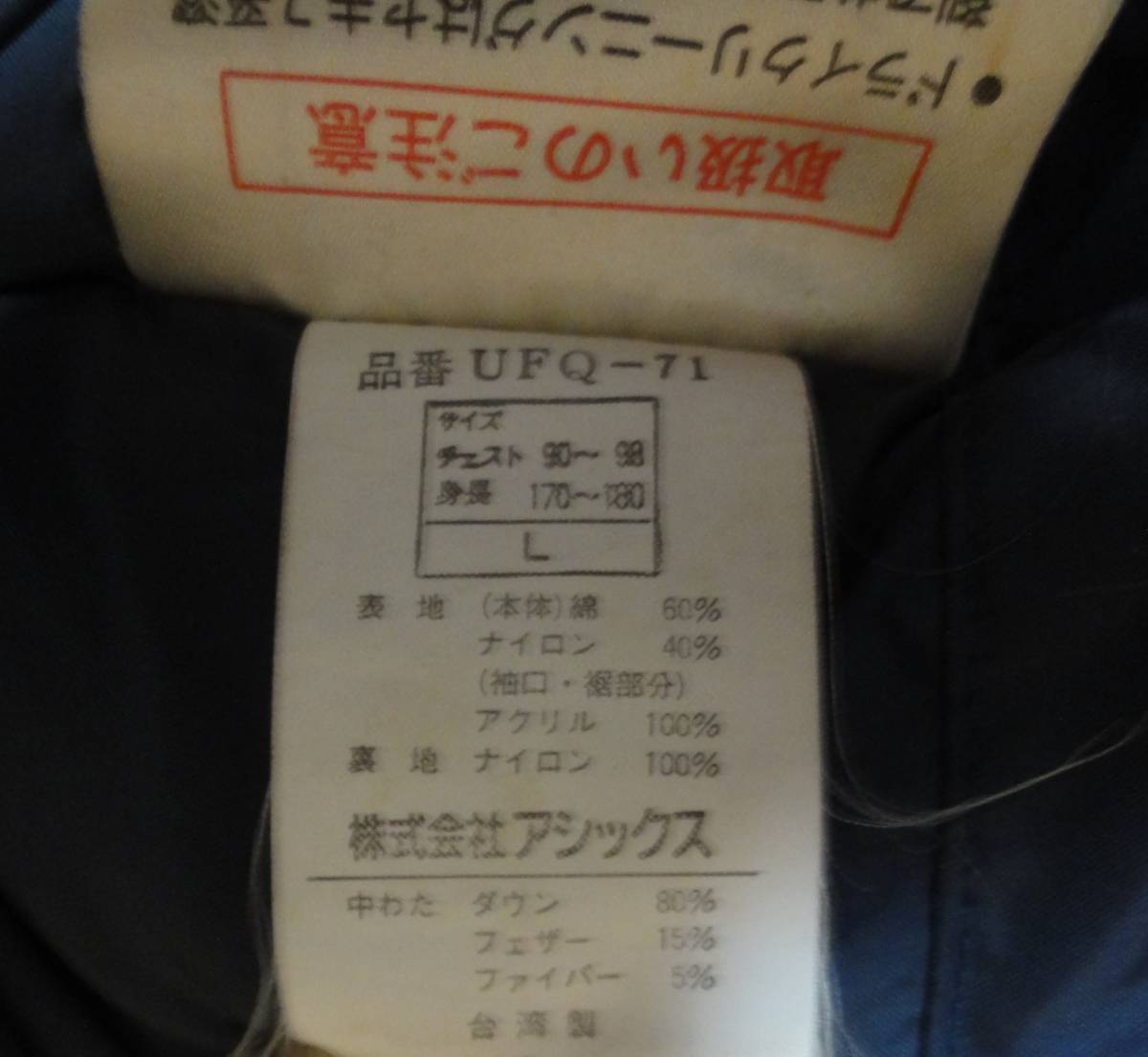 ダウンコート ダウンジャケット フード DOWN Lサイズ ASICS アシックス TARAS BOULBA ベージュ色 簡易包装 ◆Used◆