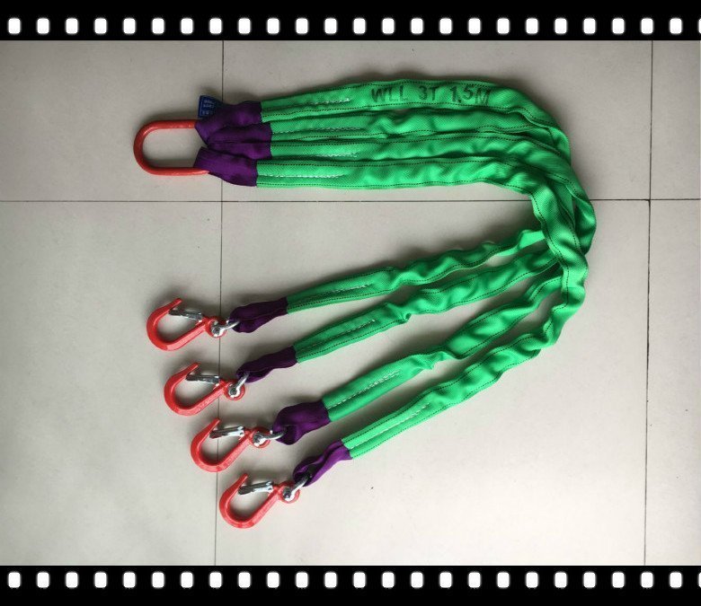 新入荷 4本吊り ベルトスリング スリングベルト 作業用 荷吊り 合金鋼製フック付き リング付き ポリエステル製 1.5m 耐荷重3t