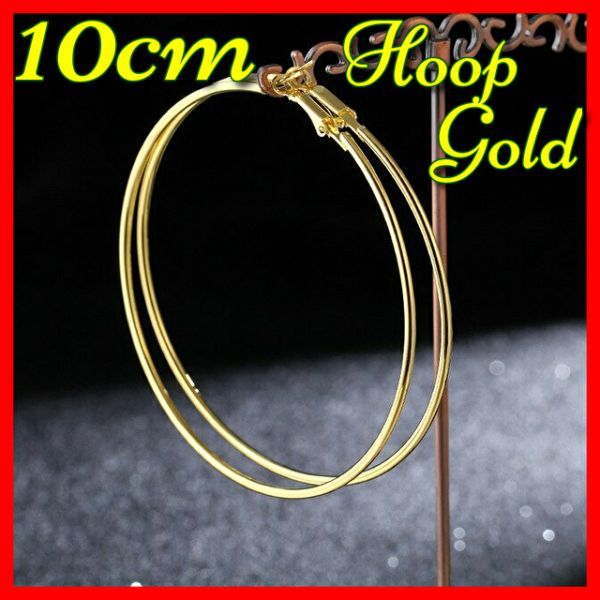 ピアス フープ 10cm ゴールド サークル ラウンド ステンレス 鋼 誇張 大 k10 レディース ビッグ スムーズ サークル ループ 直径 100ミリメートル 100mm 10cm 色 ゴールド 金 gold 素材 ステンレス