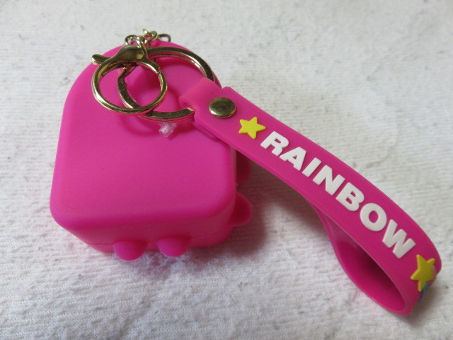 RAINBOW レインボー 小物入れ 小物キーホルダー 本体サイズ80-70-30㎜ ピンク 素材シリコーン ストラップ付 未使用 を出品します。