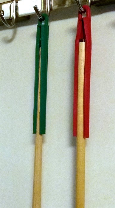 長い時間キューを使わない時などはキューを繋げてこのホルダーではさみ、ぶら下げて置くことでキューの曲がりを予防できます。