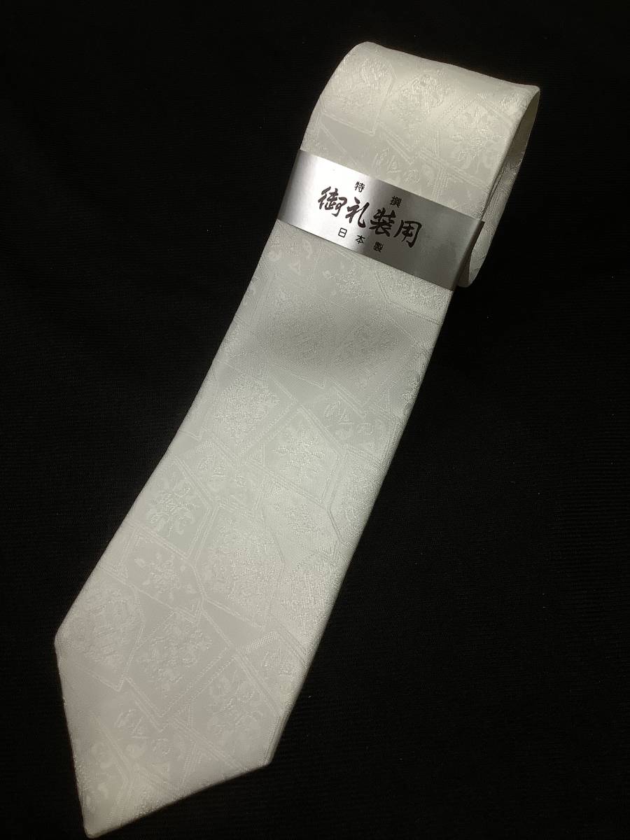 新品未使用 とにかく安い 冠婚葬祭 シルバータイ 礼装ネクタイ 日本製 白  レトロっぽい柄