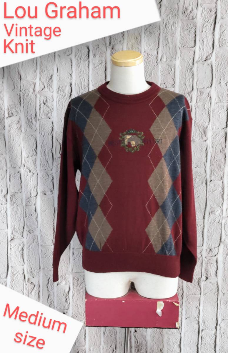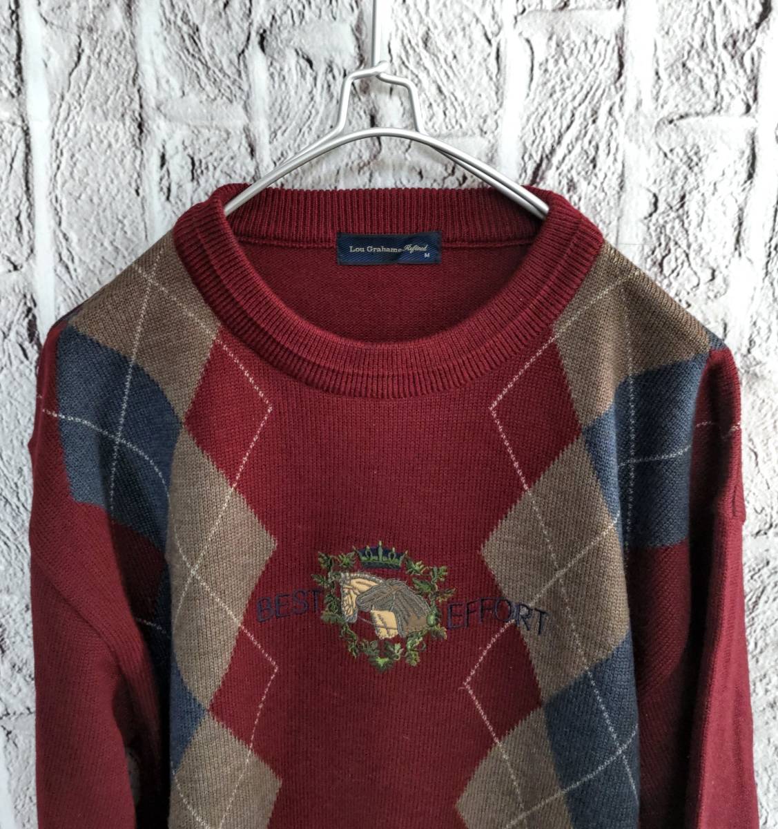 ★送料無料★ Lou Graham ヴィンテージ ニット セーター 昭和 レトロ アーガイル柄 メンズ ニット Medium