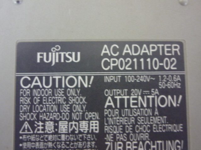 30日保証/送料無料/ACアダプター/富士通 FUJITSU CP021110-02 ■ 20V_5A(管5120306)