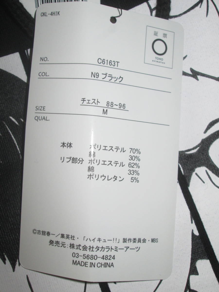 〇。゜〇新品♪ハイキュー フードつきトレーナー 裏起毛タイプ メンズ M 黒 〇゜。〇