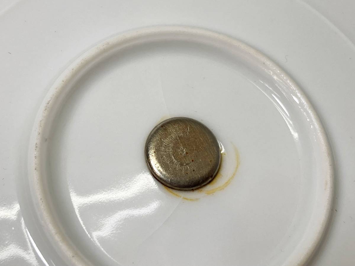 古いお品ですので金彩のスレや変色、小キズ、汚れの付着、中心部分に多少のヒビがみられますが