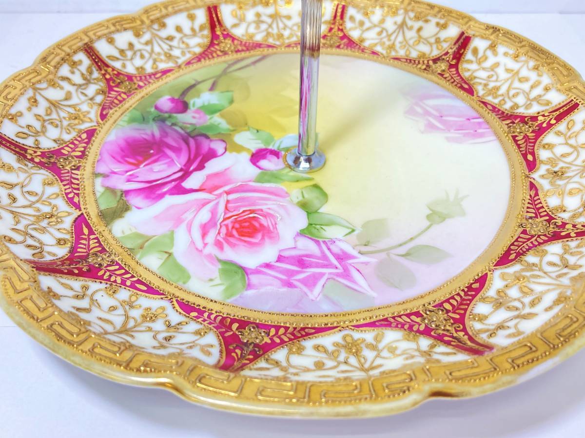 ★(志木)アンティーク Noritake(オールドノリタケ) マルキ印 メイドインジャパン 1908年 英国登録 ver2 薔薇絵 プレート 金彩 金盛 ローズ