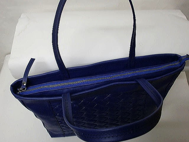 『通気性・吸湿性・柔軟性・耐寒暑性・非帯電性などの特性を持つ秀れた素材牛革』と手作業加工で編みあげたニッティングのA4サイズのファイルが入る