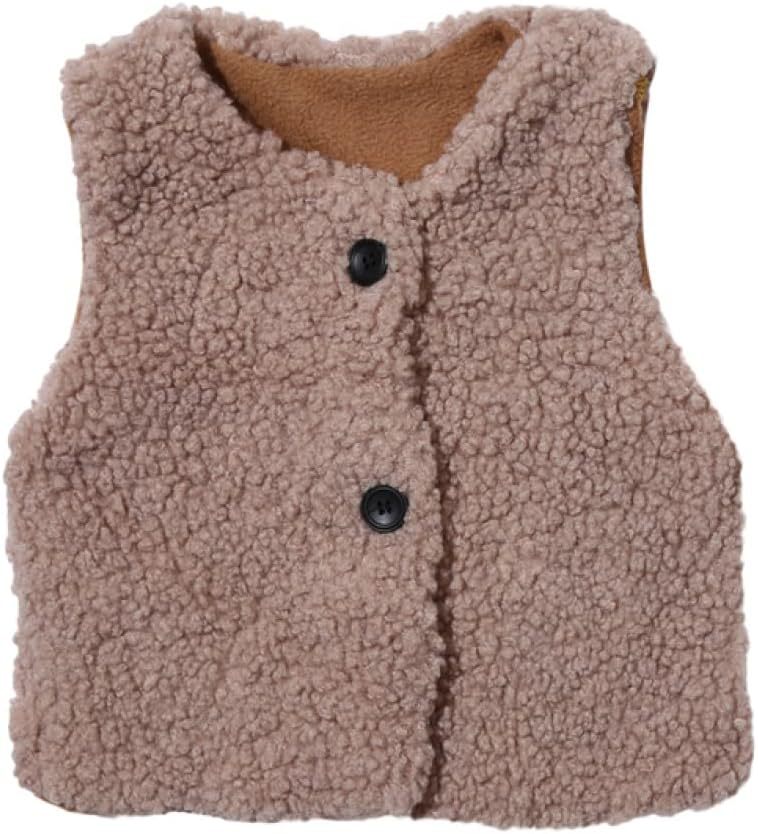 子供服 厚手ベスト 暖かい 防寒 ベビーベスト 可愛い 柔らか 軽量 前開き 袖なし ふわふわ(色:カーキ サイズ:110cm) F11