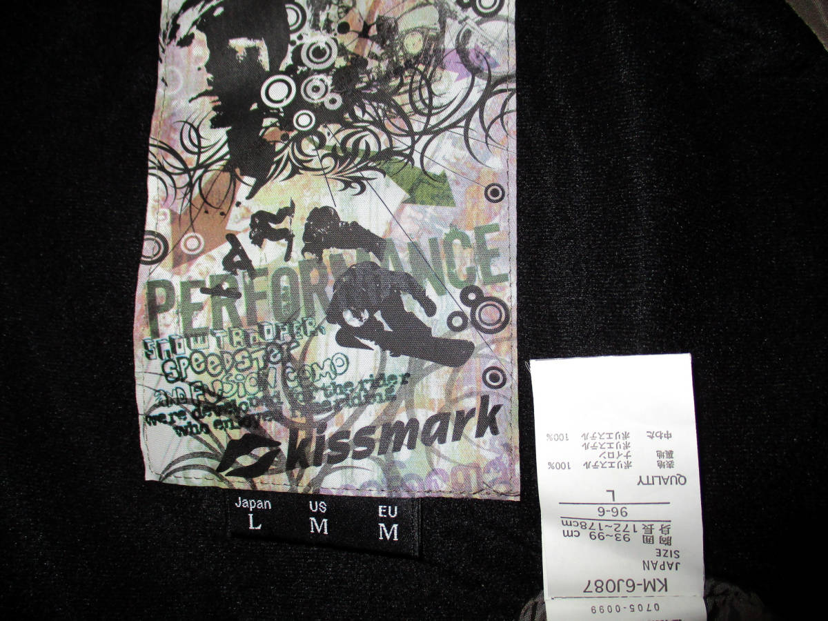 KISSMARK キスマーク スノボーウエア ジャケット KM-6J087 サイズ L です。正規品です。素材は表地 ポリエステル100,裏地はナイロン、ポリエステル、中綿 ポリエステル100です。色は画像でご判断ください。