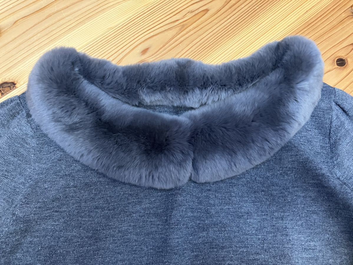 新品未使用品。ディノス  ダーマコレクションのリアルファー襟付きセーターです。襟は取り外せますのでティペットとしても使えると思います