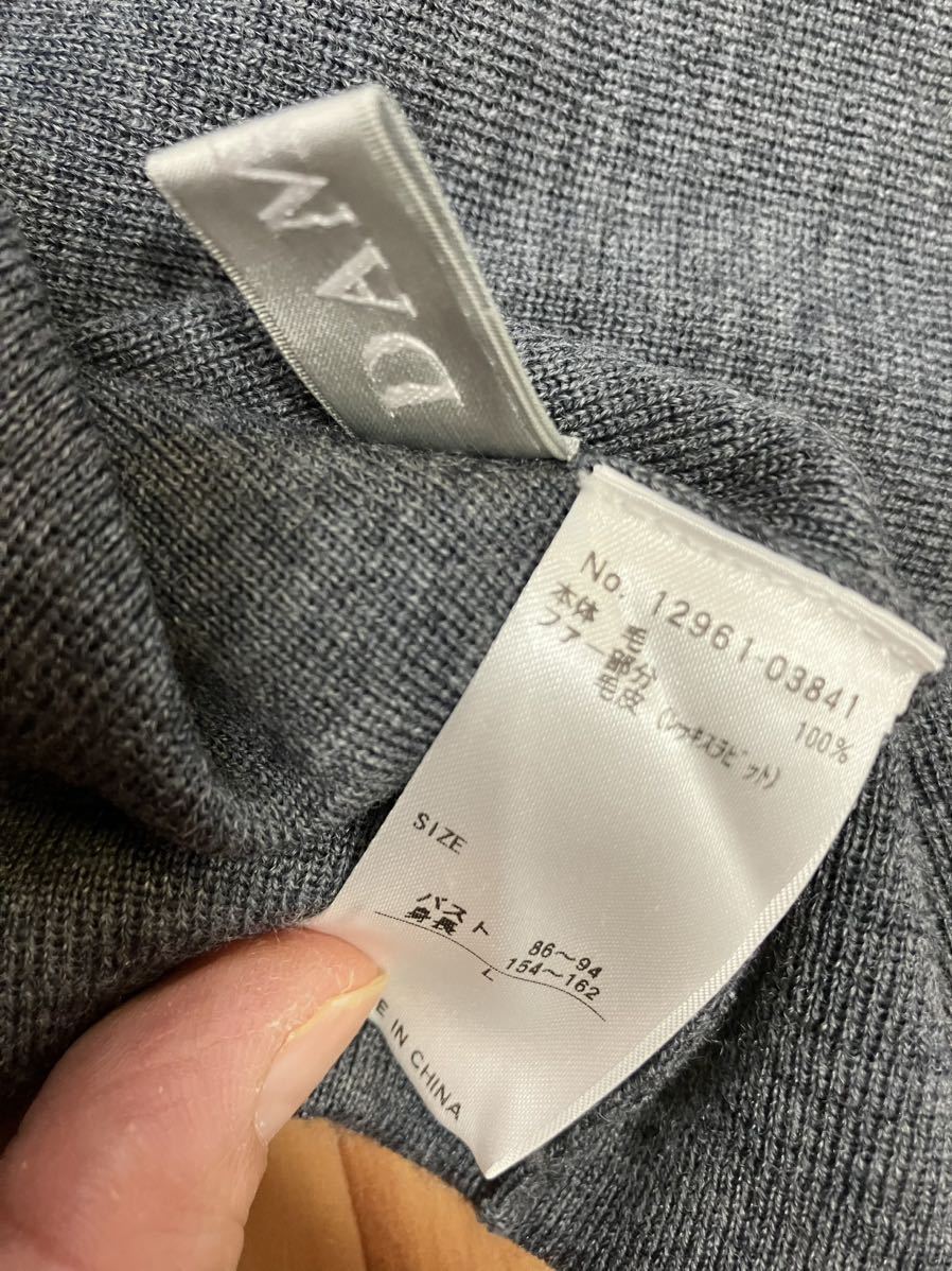 新品★ディノス ダーマコレクション リアルファー襟付き(取外し可)長袖セーター グレー Lサイズ 19800円 レディース 女性用 ニット
