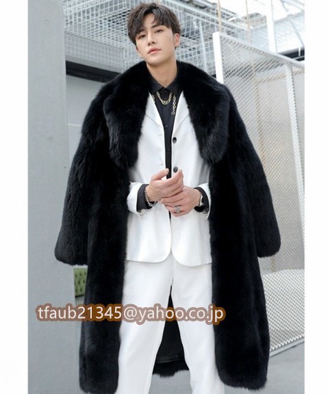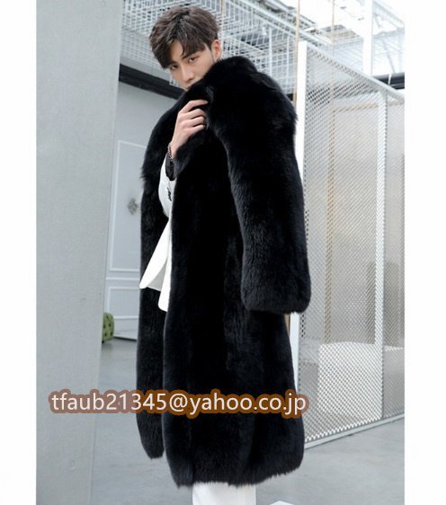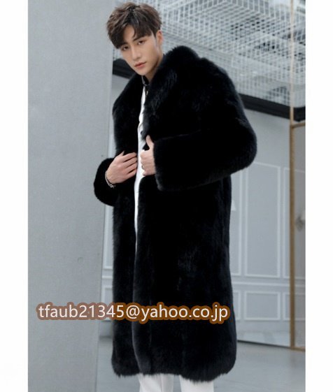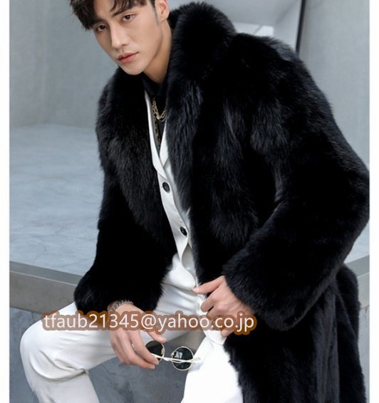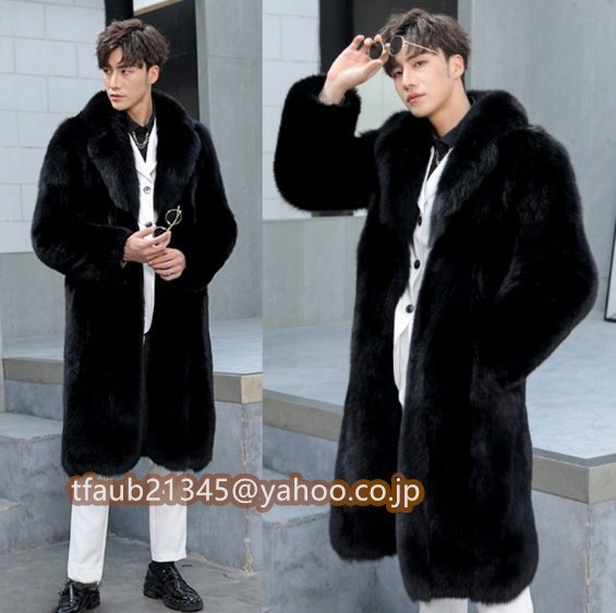 【ケーリーフショップ】新品 メンズ ロングコート 無地 厚手 折り襟 毛皮 フェイクファー 暖か 紳士 アウター 秋冬 黒/3XLサイズ