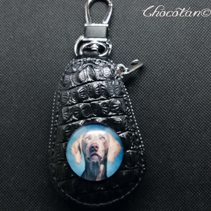 ワイマラナー キーケース 黒 【ガラス イラスト】