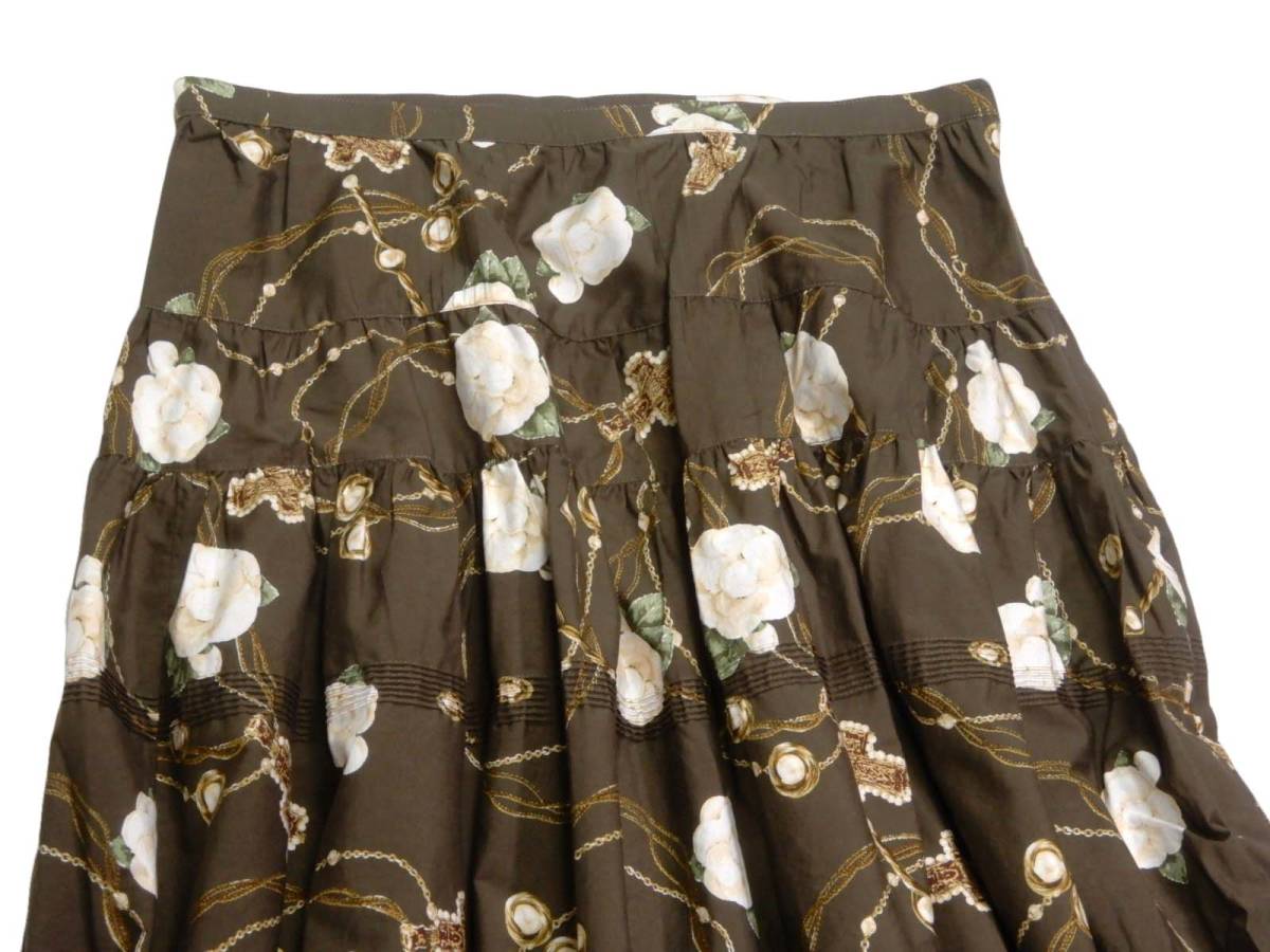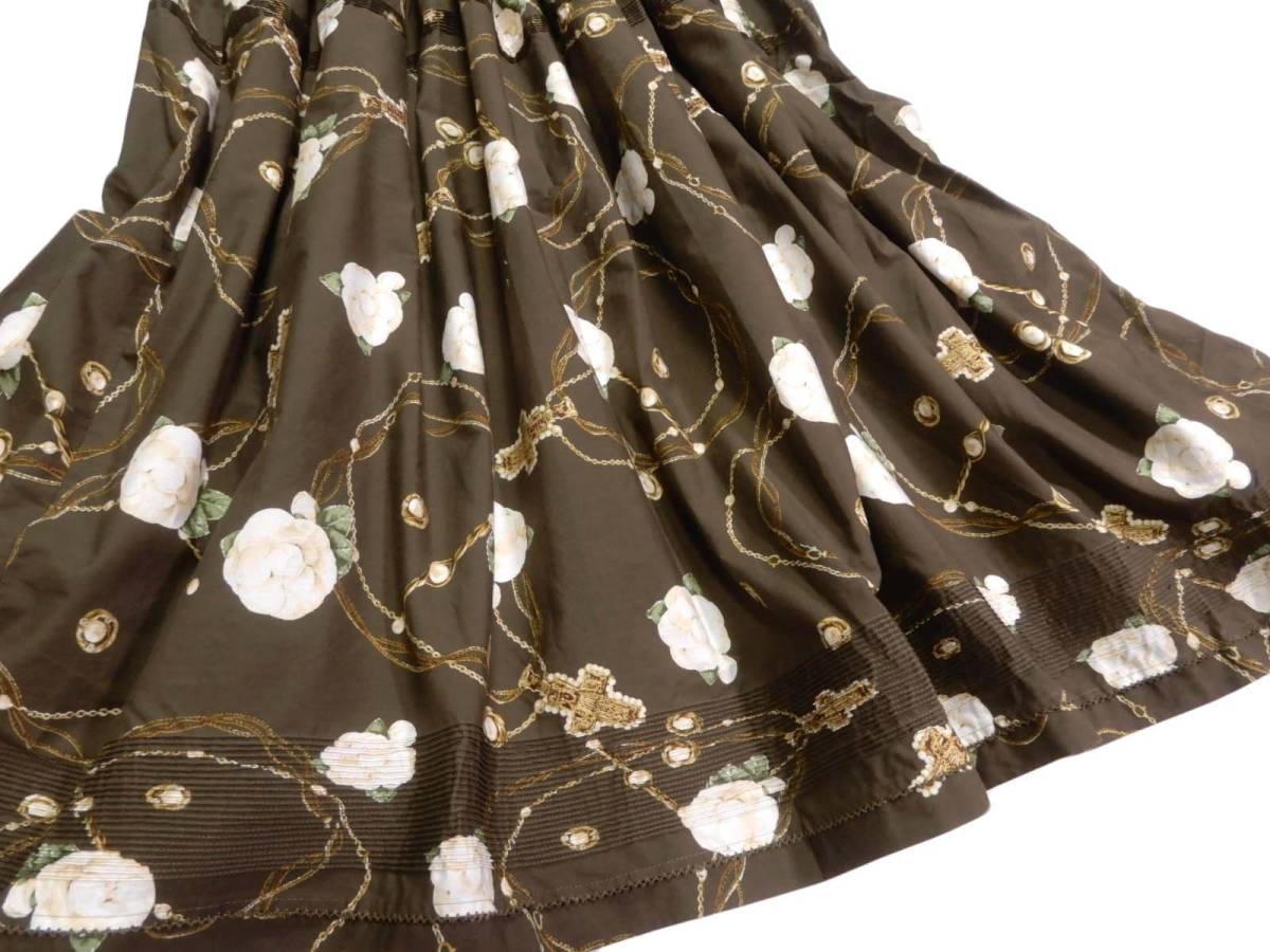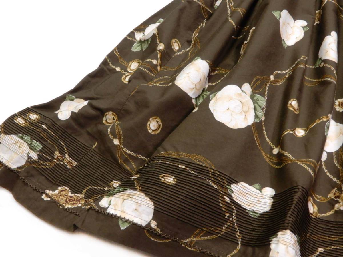 レア カネコイサオ KANEKO ISAO 大人可愛い☆ 綿 コットン 花柄 ピンタック ピコフリル ロングフレアスカート pink house ingeborg