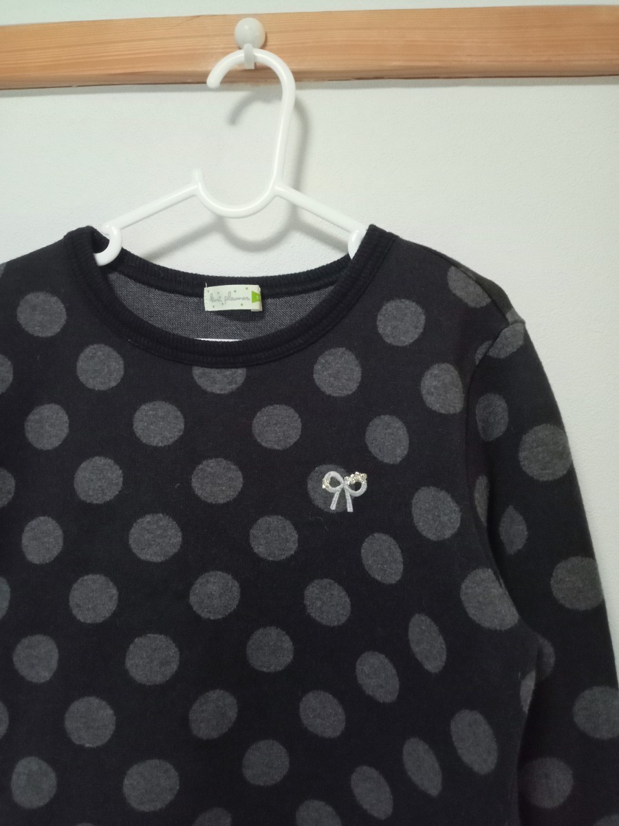 黒にグレーのドットのジャガード織りがかわいいトレーナーです