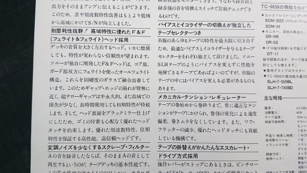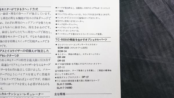 【昭和レトロ】『SONY(ソニー) ステレオテープデッキ TC-6650 カタログ 1974年11月』ソニー株式会社/オープンリールデッキ | ||