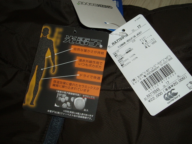 CANTERBURY(カンタベリー) ジャケット RA71594B ライフスタイル メンズ 新品です。税込み定価:¥19,800 SIZE:M ゆき丈:85cm 身幅:60.5cm 着丈:71cm 素材構成: 表地 コーティング等樹脂加工生地使用: 100% ナイロン; 中わた: 100% ポリエステル; 裏地: 100% ポリエステル 耐水性、透湿性を兼ね備えた高機能ナイロンを使用したインサレーションジャケットです。 この素材は、激しい雨風にも対応する耐水性と、衣服内の蒸れた空気を外へ放出する透湿性があります。 また、生地にDWR(耐久撥水加工)が施されているので、雨や風による抵抗を高め、衣服内の温度低下を軽減させます。 中わたには、環境に配慮した、保温性、速乾性に優れた光電子中わたを使用しています。光電子中わたは、光電子セラミックスが人体の遠赤外線(体温)を吸収し、効率良く身体にふく射し、身体を保温します。 そのふく射した遠赤外線(エネルギー)が汗の分子を細かくし、汗を早く乾かします。 ディティールは、衿にフードが収納されており、脇や袖下に余裕をもたせ、腕の上げ下げがしやすい設計になっています。 タウンユースからレジャーシーンまで幅広く活躍するアイテムです。 | |||