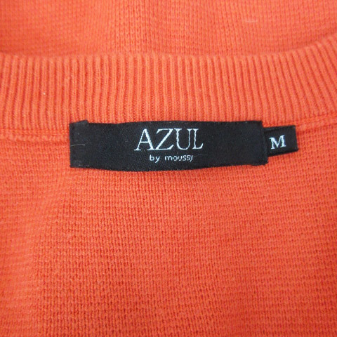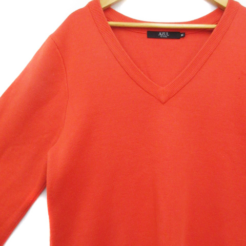 アズールバイマウジー AZUL by moussy ニットワンピース ミニ丈 七分袖 Vネック 無地 M オレンジ /FF35 レディース