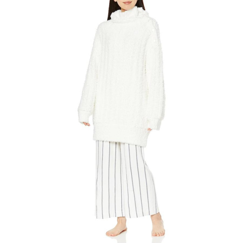 まるで粉雪のようなふわふわ感と保温機能を両立した、大人も楽しめる「SNOW」シリーズです。ゆるっとしたシルエットで仕上げたタートルネックのプルオーバーは、左肩のボタンを開ければ抜け感のある着こなしに。素材感を活かした落ち着いたデザインで、ホリデーシーズンにもぴったりな大人のルームウェアスタイルが完成します。舞い降る雪をイメージしたオフホワイトです。