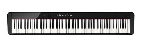 | 【私と空間を、心地よい音で満たしてくれる特別なピアノ】 指先から生まれる旋律が彩る、お気に入りの空間。 お部屋を音楽があふれる特別な空間にしてくれる「Privia PX-S1100」は、 より心地よく演奏できるようにデザイン、音、操作性が進化。ピアノ演奏を、 もっと自分らしく、もっと自由に楽しめます。 -もっと心地よく自由に楽しめるピアノを目指して- 【カシオのデジタルピアノ開発技術を結集】 世界最小※スリムボディに、グランドピアノの響きを追求して進化した音源技術、 強化された音響システム、弾き心地とコンパクトさを兼ね備えた鍵盤ユニットなど、 カシオ独自の様々なテクノロジーが凝縮されています。 【美しく豊かなグランドピアノの音と響きを追求】 [マルチ・ディメンショナル・モーフィングAiR音源] AiR = Acoustic & Intelligent Resonator [アコースティックシミュレーター] より美しく調和した鮮やかで豊かな響きグランドピアノならではの音を表現 グランドピアノの豊かで美しい響きは、その大きなボディと複雑な機構、 約230本にもなる弦が、弾き方やフレーズ、ペダルの状態に応じて共鳴し、 生み出す倍音構成の変化によって生まれます。 そのグランドピアノ独特の響きを徹底的に追求し、 自然で深みのある響きを実現したのが、 カシオ独自のマルチ・ディメンショナル・モーフィングAiR音源です。 さらに、PX-S1100/PX-S3100は、 進化した独自の音響システムに合わせて改めて88鍵盤全て 1鍵盤ごとに各弦の繊細な倍音の共鳴を調整することで、 より美しく調和した鮮やかで豊かな響きを堪能することができます(ストリングレゾナンス)。 その新たな調整は、ダンパーペダルを踏んで88鍵盤の弦が全て開放された状態の 共鳴を表現する場合にも活かされています(ダンパーレゾナンス)。 また、ダンパーペダルを踏んでダンパーが弦から離れる際に鳴る音(ダンパーノイズ)、 鍵盤を弱く押した時や鍵盤から指を離した時に聞こえる グランドピアノ特有の機構音(キーアクションノイズ)までも表現。 これらにより、グランドピアノならではの音を感じながら演奏することができます。 【Bluetoothで広がるPriviaの世界】 [ワイヤレスMIDI & AUDIOアダプター] 外部電源不要で、オーディオとMIDI両方に対応する、 付属の「ワイヤレスMIDI & AUDIOアダプター*1」を装着することで、 Privia PX-S1100/PX-S3100の可能性が広がります。 オーディオとMIDIを独自のデータ制御方法でミックスし、USB経由で通信。 オーディオとMIDIデータを両方使えるアダプタータイプは世界初となり、 スマートフォン/タブレット内の好きな楽曲をPX-S1100のこだわりの音響システムで再生、 またスマートフォンやタブレットをはじめとする電子機器とのMIDIデータの通信が可能です。 Bluetooth規格を使った通信ではレイテンシー(遅延)や信号の乱れが避けられませんが、 カシオ独自の技術的な対策により、通信の速度と安定性を高いレベルで両立。 音楽の再生やアプリを使っての演奏を快適に楽しむことができます。 ●鍵盤 スマートスケーリングハンマーアクション鍵盤 (表面仕上げ 白鍵:象牙調、黒鍵:黒檀調) ●鍵盤数・・・・88 ●タッチレスポンス・・・・感度設定5種類、オフ ●音源・・・・マルチ・ディメンショナル・モーフィングAiR ●最大同時発音数・・・・192 ●音色数・・・・18(スプリット機能使用時の低音域専用1音色を含む。 ) ●内蔵曲・・・・60曲 ●デモ曲・・・・1曲 ●曲・・・・パートオン/オフ(パートセレクト右手/左手) ●録音機能 MIDI録音 2トラック、1曲、 リアルタイム録音、データ容量合計約10,000音符 ●オーディオレコーディング 最大99曲、1曲あたり最大約25分 (USB メモリーに録音、16bit 44.1kHz ステレオWAV フォーマット) ●ペダル ペダル1本(SP-3)付属、端子×1(ダンパー) 3本ペダルユニットSP-34(別売)対応 ハーフペダル(ダンパー)対応(別売3本ペダルユニットSP-34使用時) ●スピーカー・・・・16cm×8cm(楕円形)× 2 ●アンプ出力・・・・8W+8W ●電源・・・・電源:2電源方式 家庭用AC100V電源または、単3形アルカリ乾電池×6本(別売)使用(連続動作時間:約4時間)※条件による ●消費電力・・・・10W ●寸法幅1,322×奥行232×高さ102mm ※本体のみ ●質量・・・・11.2kg(本体のみ、電池含まず) 【主な機能/仕様】 ●アコースティックシミュレーター 88鍵デジタルスケーリング、ハンマーレスポンス、 キーオフレスポンス、ストリングレゾナンス(4段階、オフ) ダンパーレゾナンス(4段階、オフ)、ダンパーノイズ(4段階、オフ) キーアクションノイズ(4段階、オフ) ●エフェクト ホールシミュレーター(4種、オフ)、サラウンド(2種、オフ) コーラス(4種、オフ)、ブリリアンス、DSP(一部の音色に組込み済み) ●レイヤー/スプリット・・・・・〇 ●オクターブシフト・・・・・-2オクターブ~0~+2オクターブ ●トランスポーズ・・・・・ー12半音~0~+12半音 ●チューニングコントロール・・・・・A4=415.5Hz~440.0Hz~465.9Hz ●音律(スケールチューニング)・・・・・平均律+16種類 ●メ