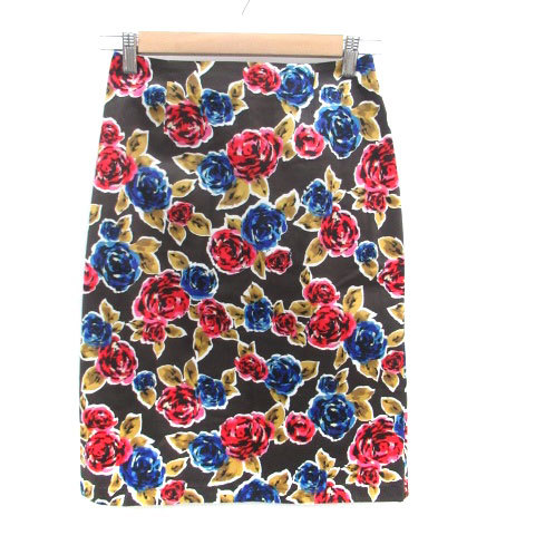 レイビームス Ray Beams フレアスカート ミモレ丈 花柄 0 マルチカラー 茶色 ブラウン /HO36 レディース