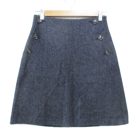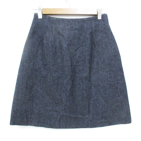 イエナ IENA 台形スカート ひざ丈 ウール ダイアゴナルストライプ柄 36 インディゴブルー 白 ホワイト /FF20 レディース