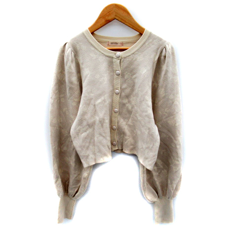 ワンアフター アナザー ナイスクラップ カーディガン ショート丈 ラウンドネック バルーンスリーブ 花柄 F ベージュ /SY27 レディース