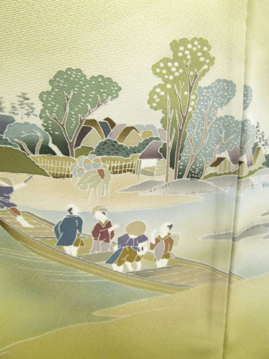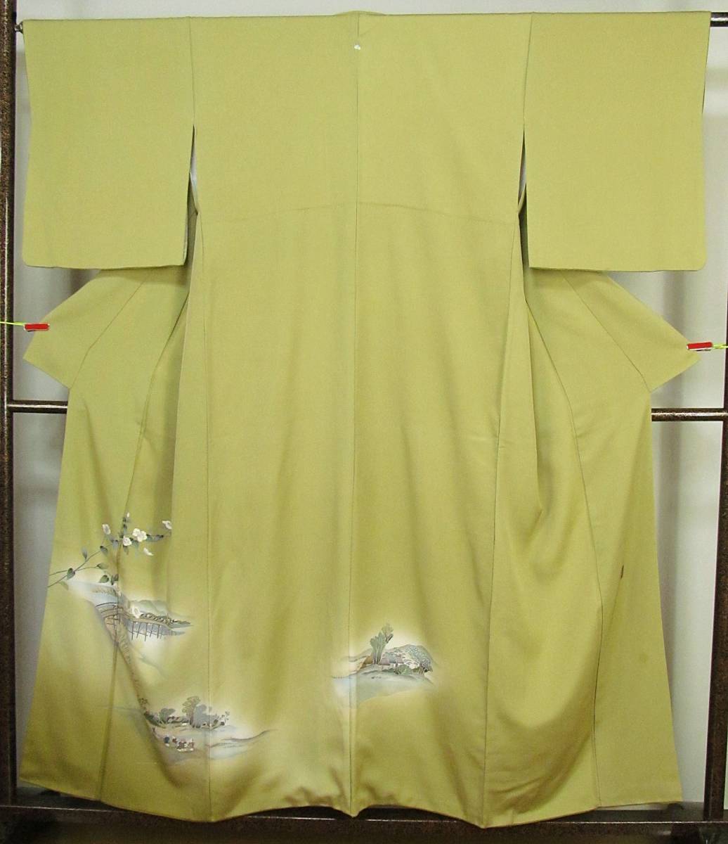 す130 正絹 色留袖 花 橋 船 1つ紋入り 落款入り 身丈157cm ◎◎セール◎◎