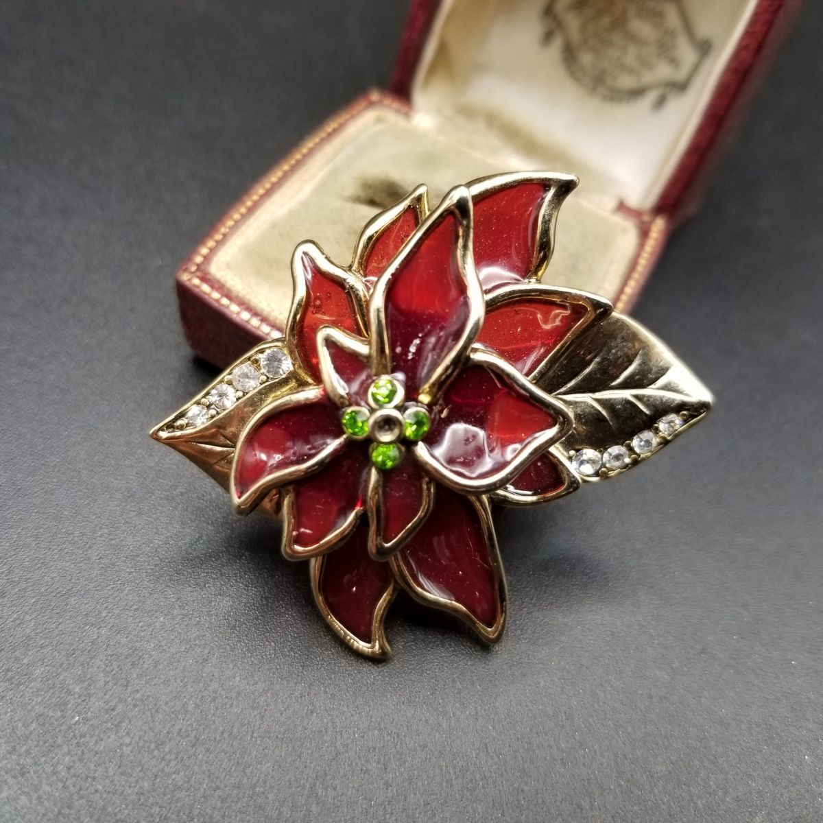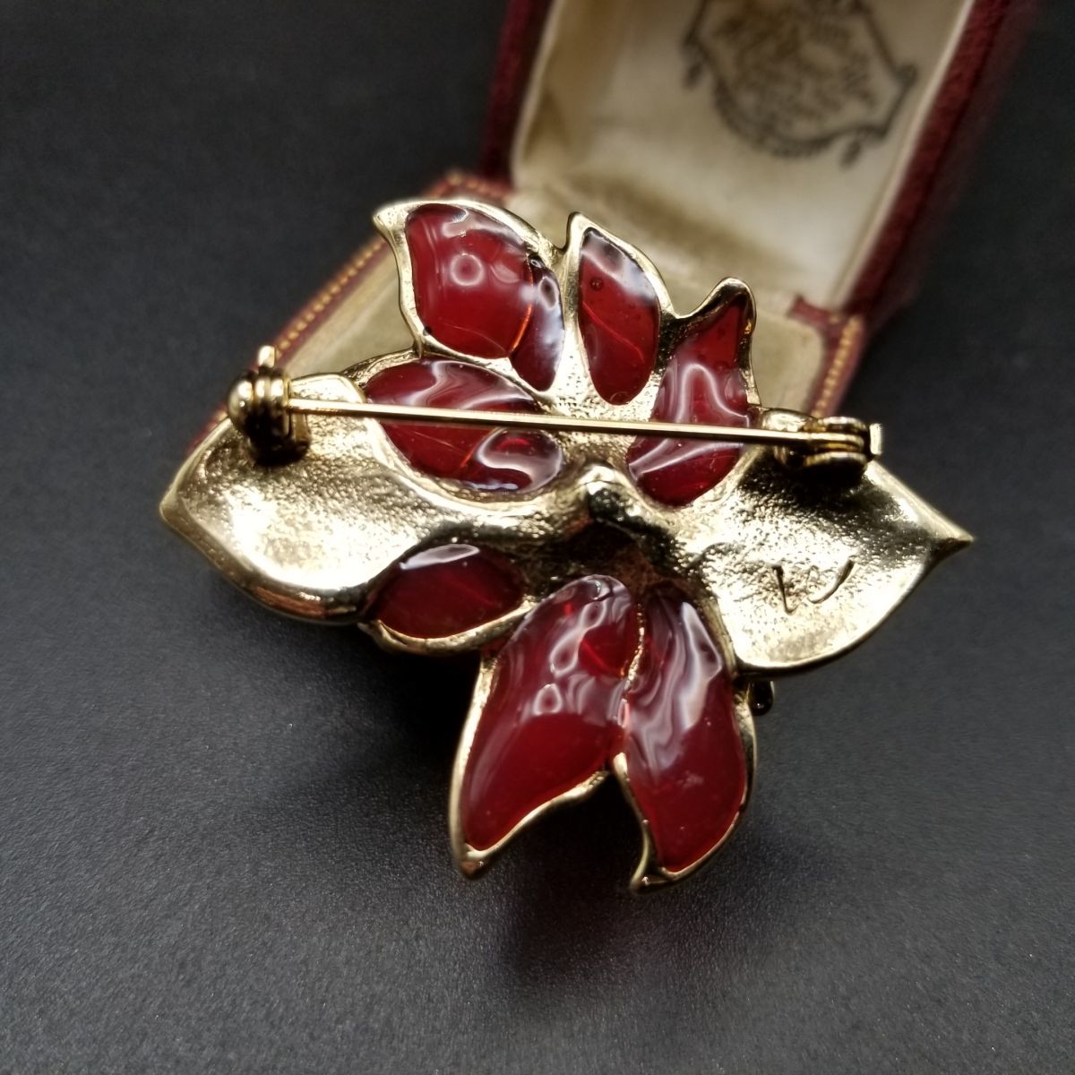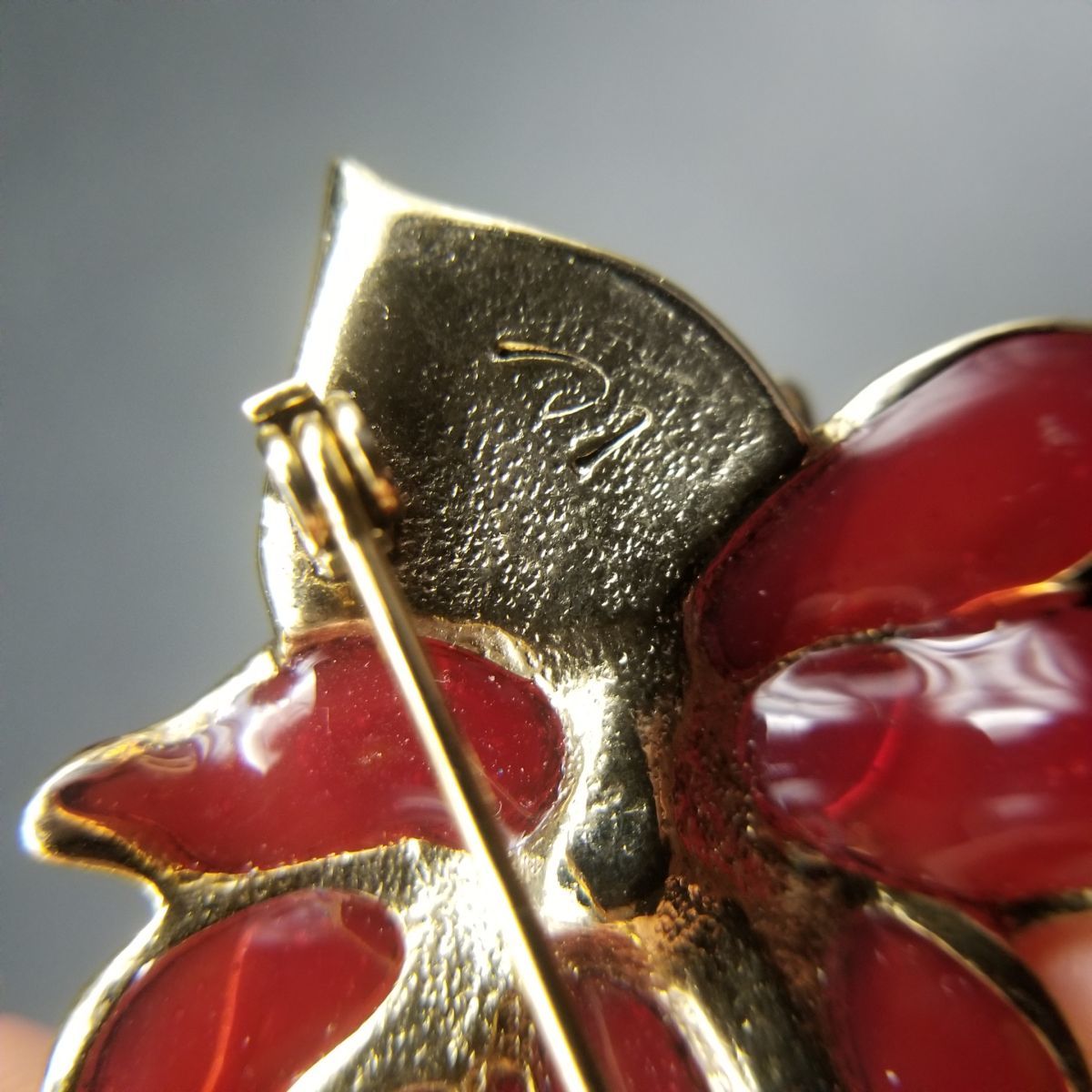 マゼンダ ストーン フラワー モチーフ エレガント 鮮やか ゴールドトーン ヴィンテージ ブローチ ジュエリー 輸入 Y9-A