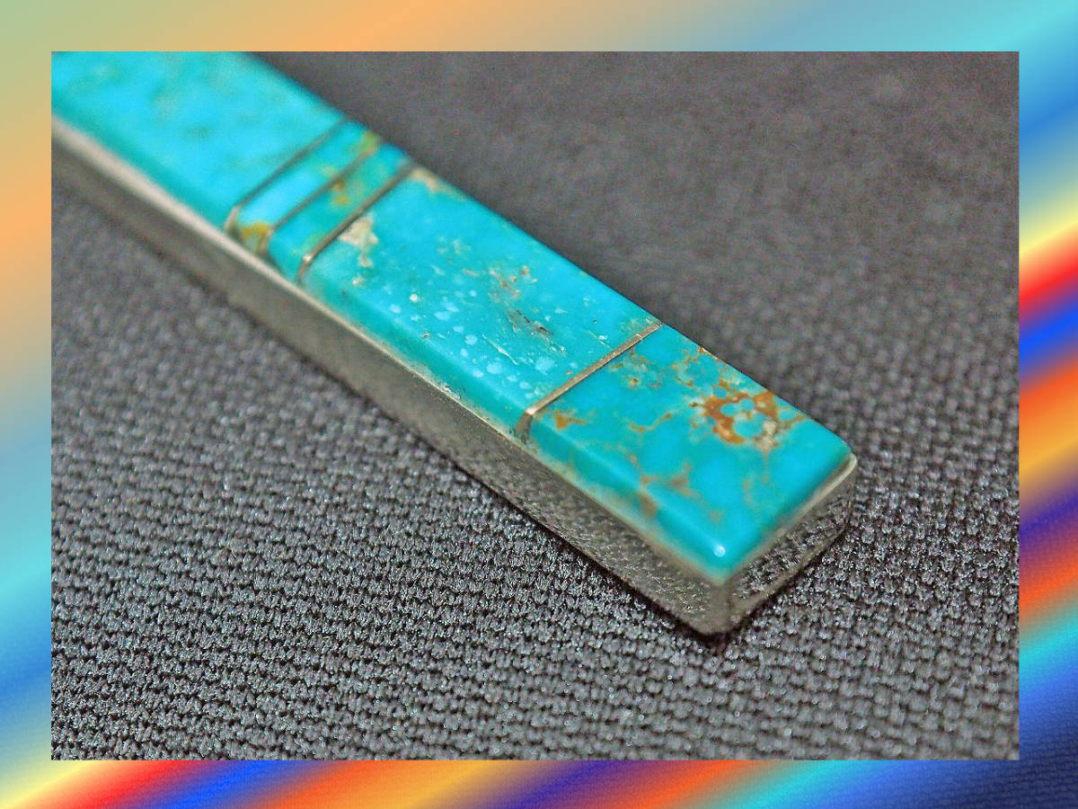 ※インディアンジュエリーの偽物が出回っていますが、インディアンジュエリーと名乗れるのはアメリカの法律では【アメリカインディアン作家による作品】のみで、この作品は本物のインディアンジュエリーです。