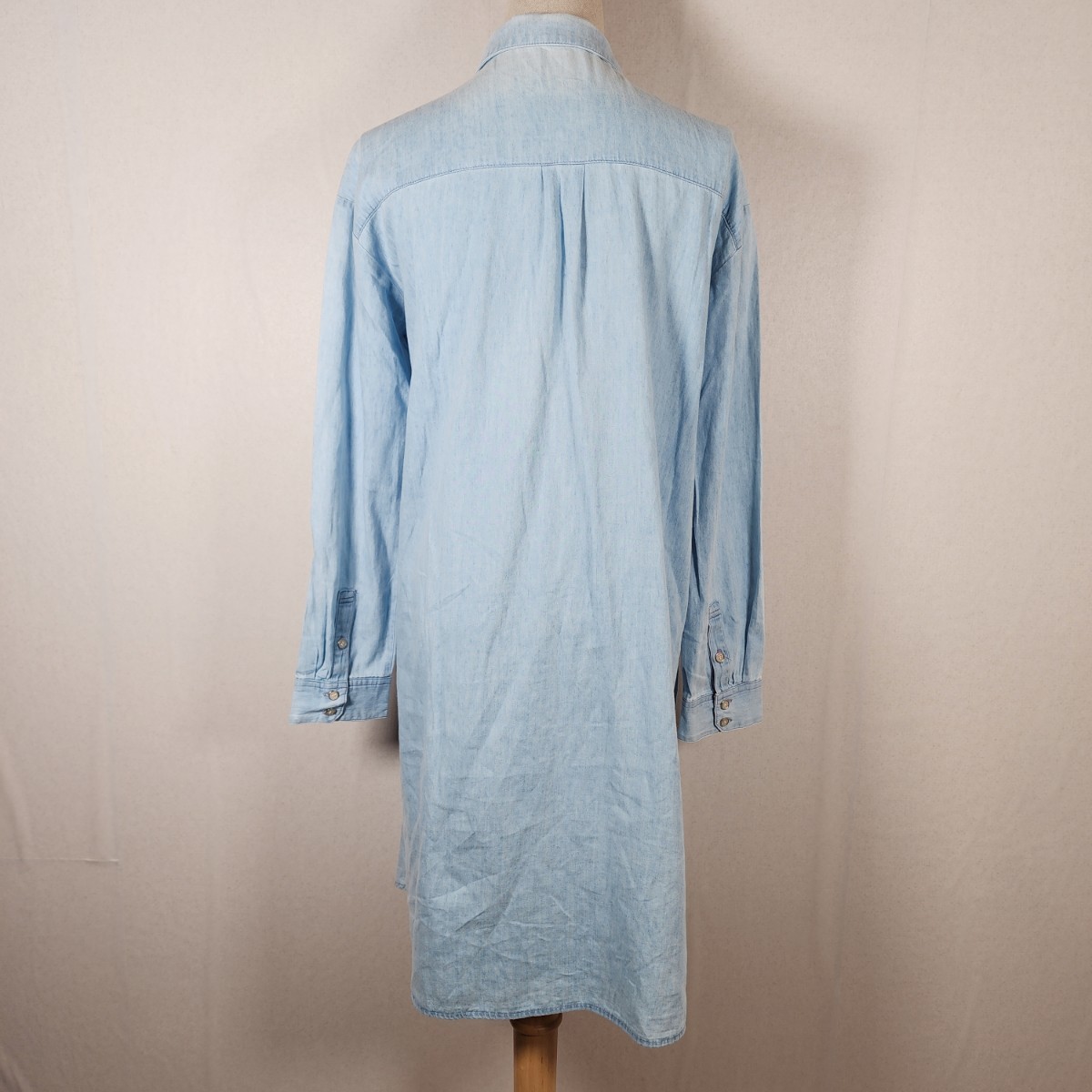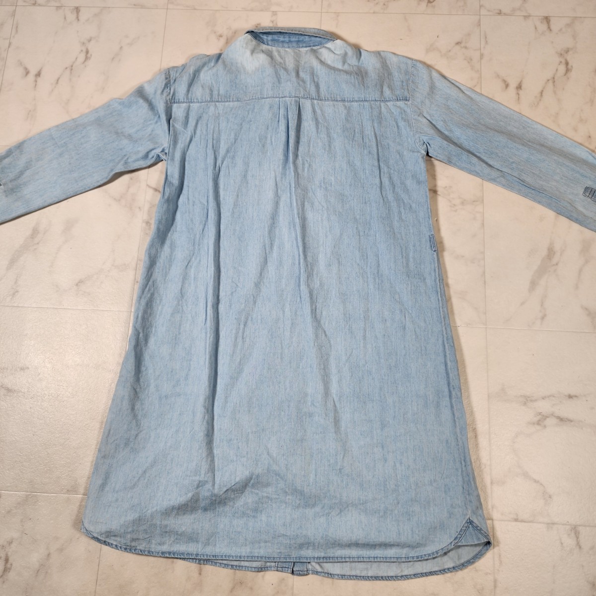 Y1 美品 alicia PAGEBOY アリシアページボーイ レディース ひざ丈 デニム シャツ ワンピース 長袖 F ライトブルー 薄手 柔らか