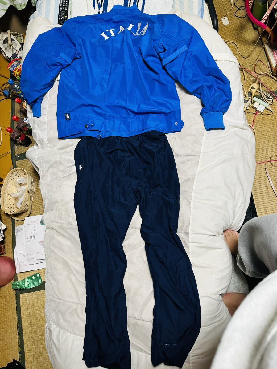 採寸は上が着丈70、身幅59、肩幅49、袖丈54.下が腰幅30、股上37、股下70、腿幅31、裾幅22です。