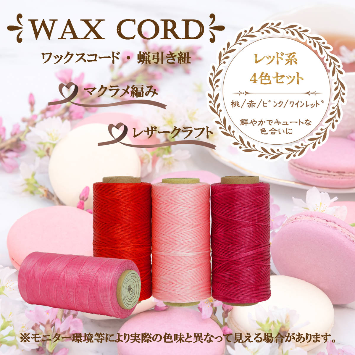 レザークラフトやマクラメ編みに、蝋引き済みのポリエステルの糸です。 レッド系の色合いを4色セットにしました。 明るくキュートな色合いに、乙女心がくすぐられます♪ 大容量の260m巻きですので、いろんな作品にチャレンジできます。 【商品色番号】 045桃色 / 049赤色 / 070ピンク色 / 071ワインレッド 他の色も出品しております。宜しければ「こちら」をご覧ください♪ |