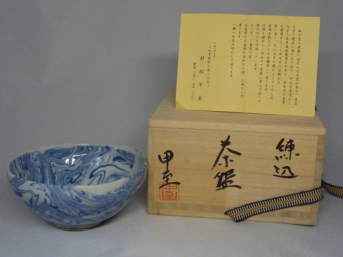 期間限定! ◎◎利休kura茶道具RiQ蔵☆☆ 茶碗 / 練込 村松宗眞 甲至 美濃焼 瀬戸焼 / 共箱【骨董・美品】