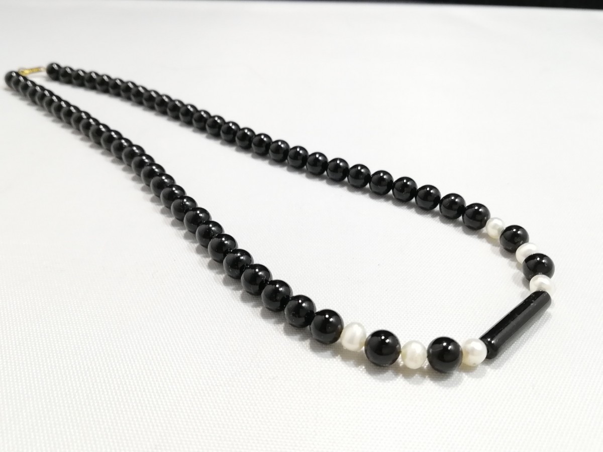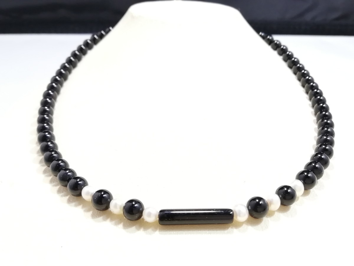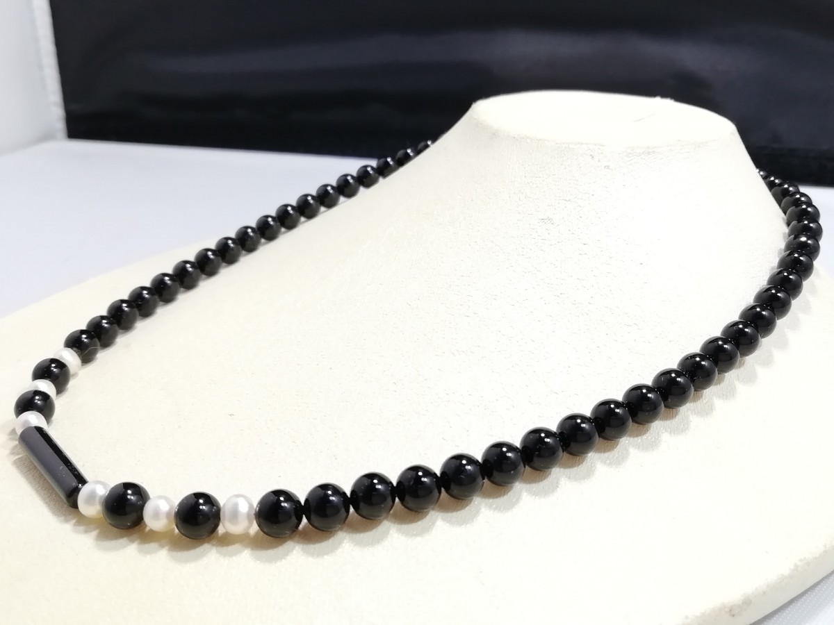 天然オニキス&淡水パールオリジナルディザインネックレス