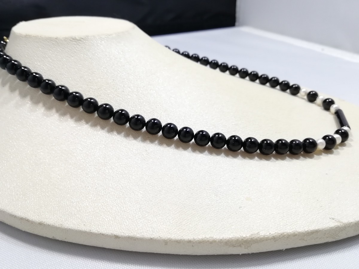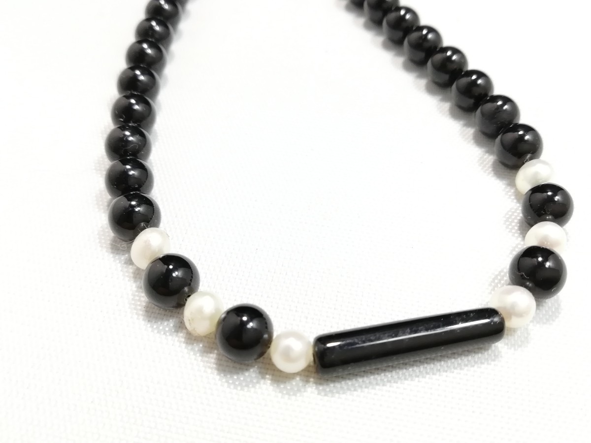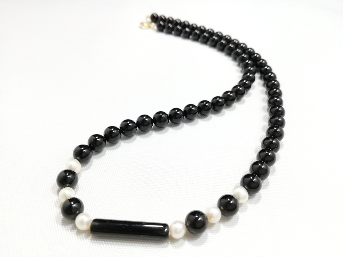 天然オニキス&淡水パールオリジナルディザインネックレス