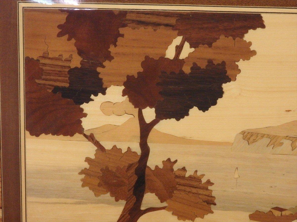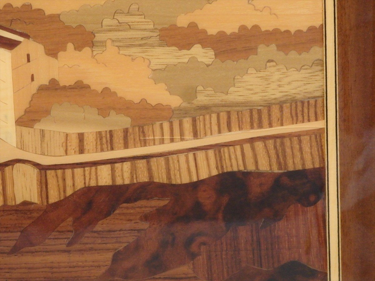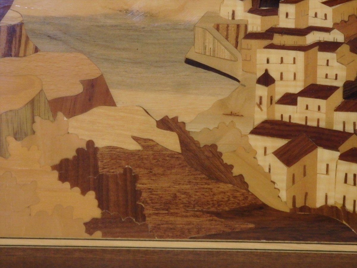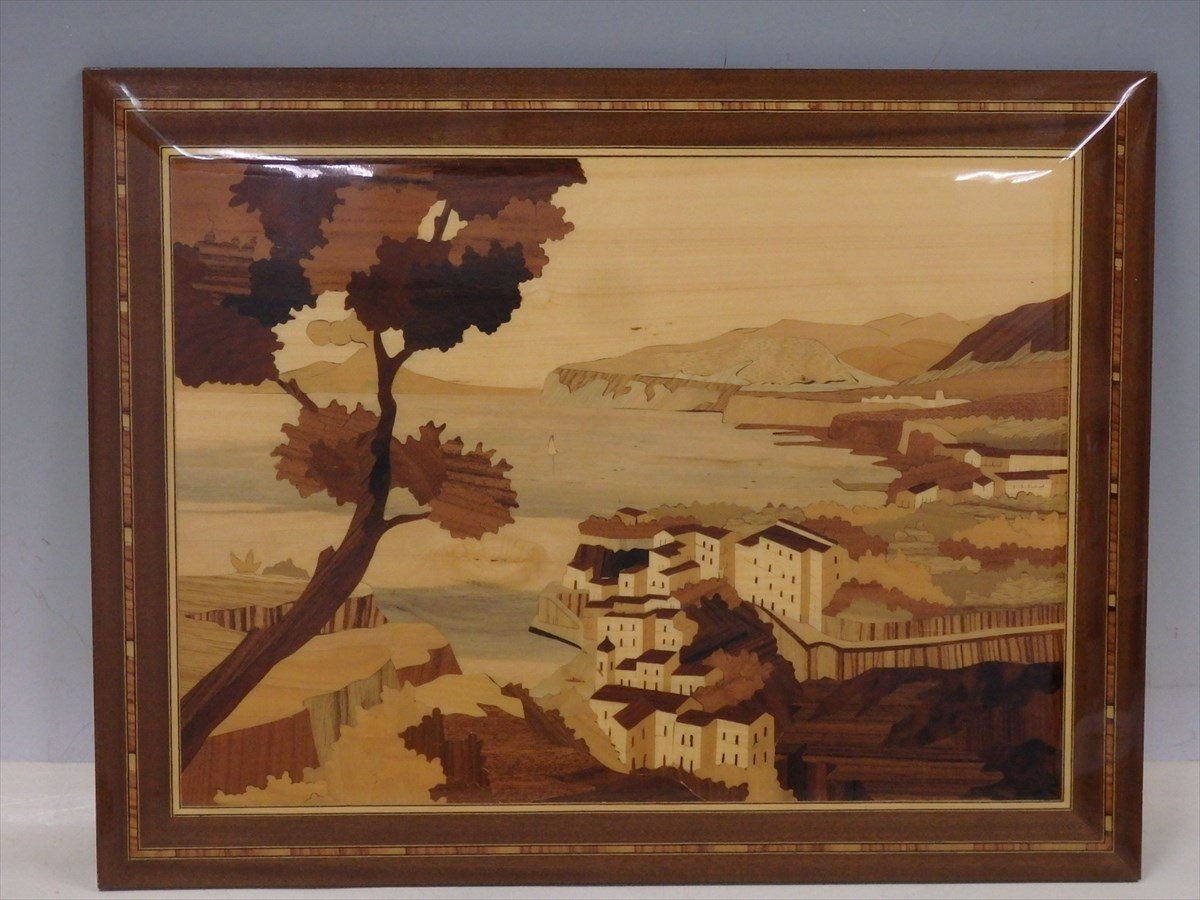 ◎イタリア製【寄せ木細工 額装】サイズ:53.2×41.4×厚2cm 地中海? 風景画 アマルフィ?