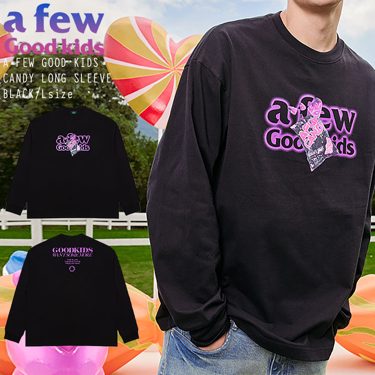 A FEW GOOD KIDS AFGK 正規品 男女兼用 ユニセックス ビッグサイズ キャンディ シリーズ 長袖Tシャツ CANDY SERIES LONG SLEEVE クロ L