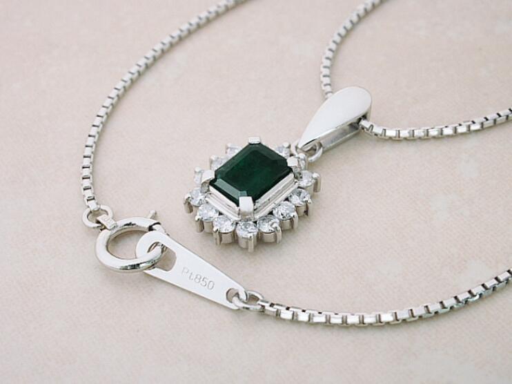 エメラルド  ダイヤ ネックレス  Pt900 Pt850  プラチナ