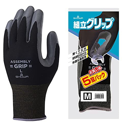 5双・ブラック M NO370MB-5P・・Size:MStyle:5双・通年用・油・摩耗・突き刺しに強く、薄く丈夫で指先感覚が活かせるニトリルゴム背抜き手袋・材質(樹脂部):ニトリルゴム・材質(繊維部):ナイロン、ポリエステル、その他・全長:220mm/手のひらまわり:200mm/中指長さ:77mm●組立グリップのカラー展開「ブラック」の5双パックです。 ●ニトリルゴムを手のひらにコーティングしているため、耐摩耗性に優れています。 ●薄くて強度があるため、指先感覚が必要な細かい組立作業にも適しています。 ●繊維部分は編み目が細かく縫い合わせのない、独自の13ゲージ・シームレス編み手袋です。 ●裾部分は、ほつれを防ぐオーバーロック加工を施しています。 ●樹脂部分はニトリルゴム製のため、耐油性に優れています。