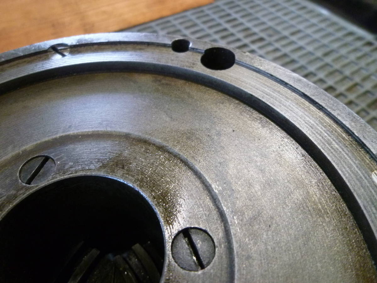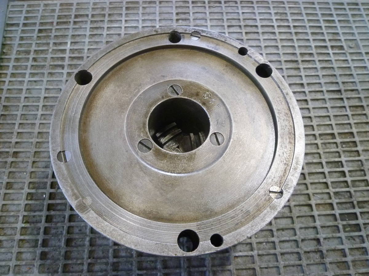 外径:約165mm。外爪・チャックハンドルはありません。裏面外周部分に削った痕や、サビ・キズ・汚れ等あります。