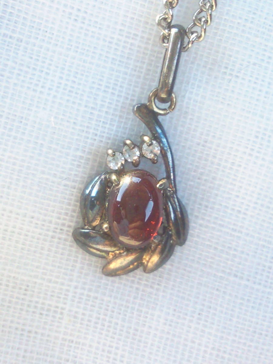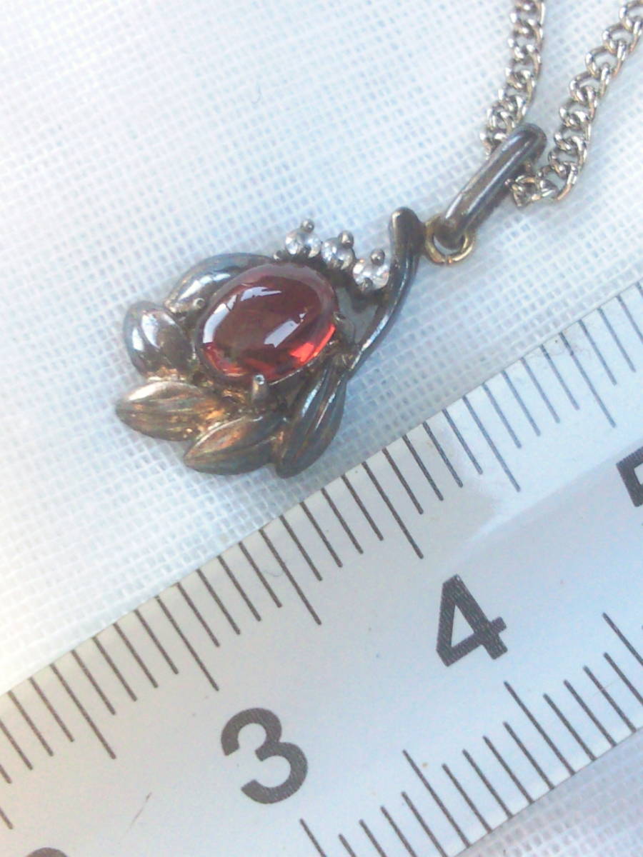 ガーネット銀製ネックレス●ピジョンブラッド細密銀装飾ペンダント●鳩血色シルバー年代物ヴィンテージ品アンティークジュエリー●送料無料