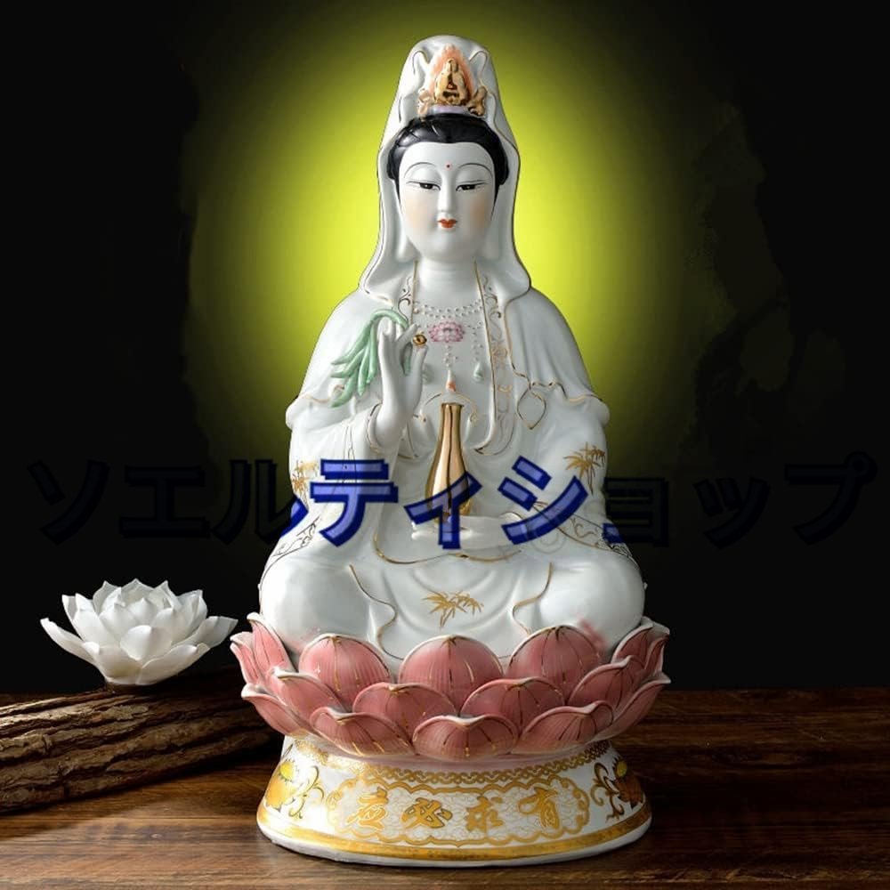 人気美品☆観音 菩薩 置物 陶器製 (高さ30cm)