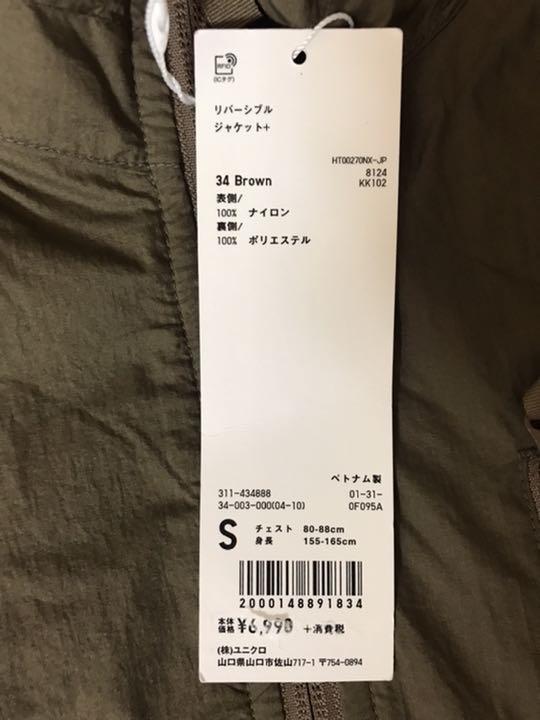 新品 ユニクロ ユー リバーシブルジャケット 34ブラウン Sサイズ
