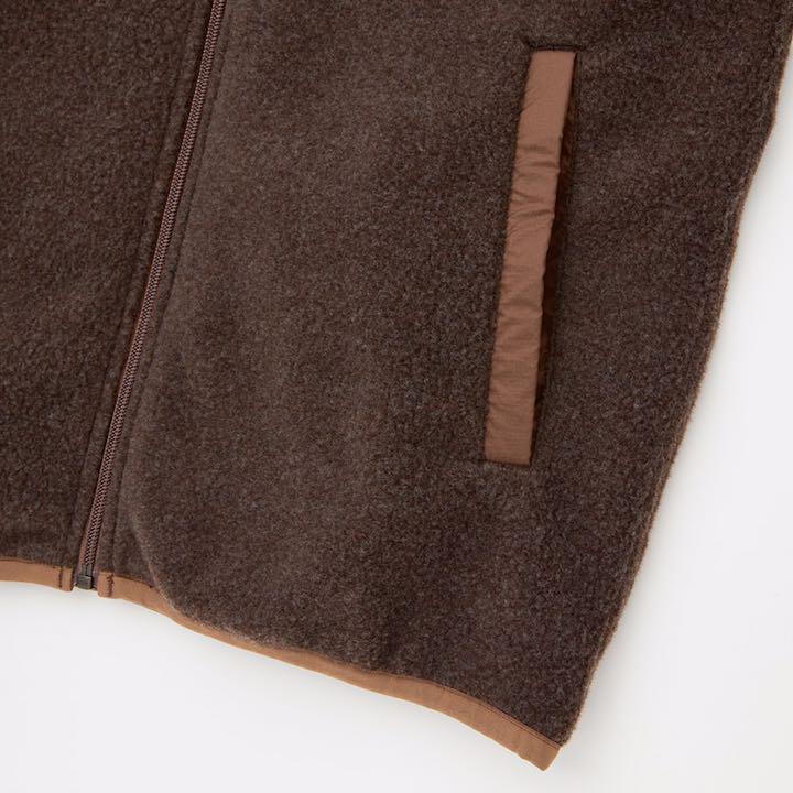 ふわふわの裏面と撥水性のある表面のリバーシブル仕様。羽織りにも重ね着にも使えて便利。