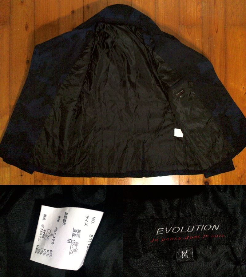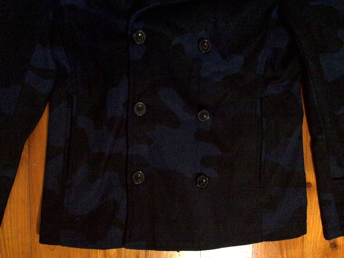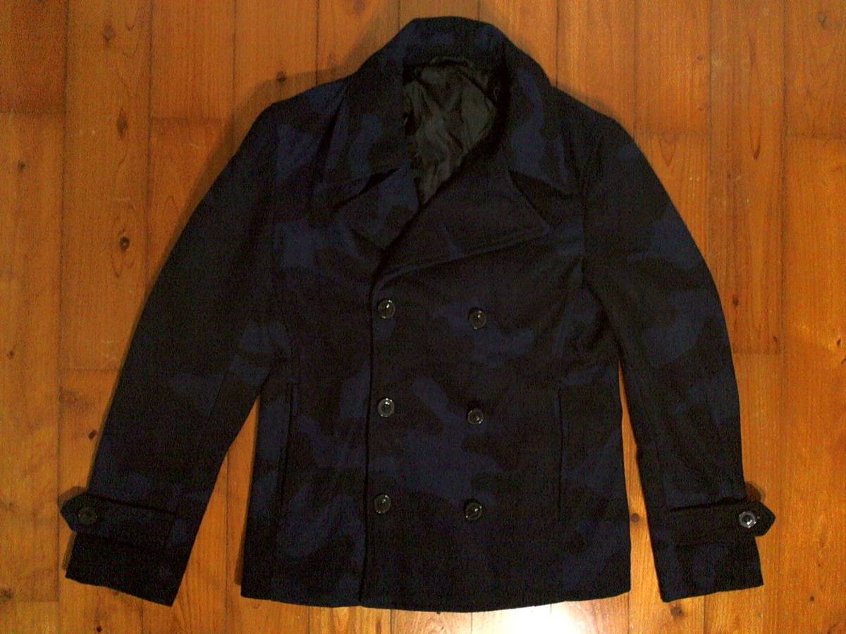 | ☆エボリューション【EVOLUTION】ピーコート ダブルボタン ハーフコート ジャケット M 濃紺 迷彩柄 カモフラージュ | |