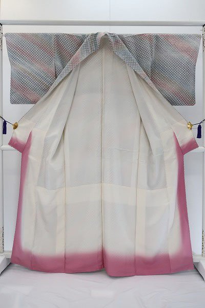 〔着物の色〕  グレー地 〔八掛の色〕 ピンクぼかし 〔着物の素材〕 正絹  |